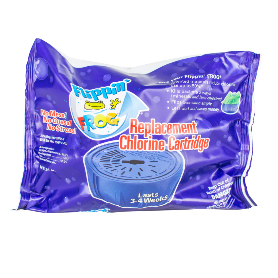 Frog Flippin' Frog Replacement Chlorine Cartridge provides chlorine for the Flippin' Frog Pool System. Replace the Chlorine Cartridge every time the Flippin' Frog flips over.